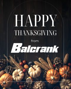 Balcrank will be closed for Thanksgiving on November 27th – 28th. We wish you a safe and Happy Thanksgiving! Normal hours resume