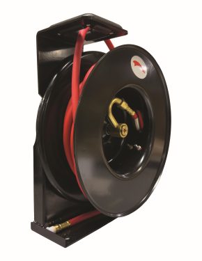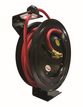 This solid, all steel hose reel is preferred for general duty, automotive dealerships, and service garages. Proven performance and reliable operation.